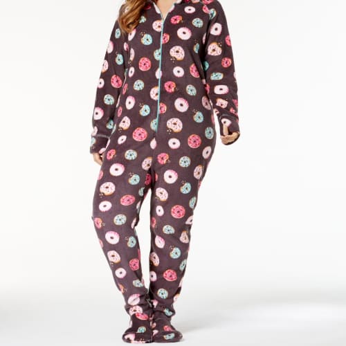 This ultra-plush one-piece jumpsuit features a cozy attached hood and a convenient zip-front design, making it a seasonal favorite for maximum warmth during cold winter nights.